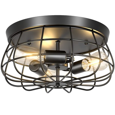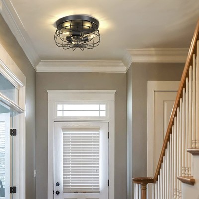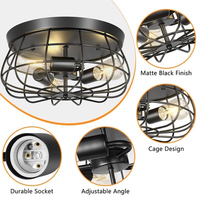 This farmhouse 3-light flush mount ceiling light features a black industrial cage design for a clean, functional look in hallways, entryways, kitchens, or bedrooms. Condition is New. It is listed in the Chandeliers & Ceiling Fixtures category. Shipping cost is $0, which indicates free shipping; check the listing for details on carrier, handling time, and delivery estimates. No additional specifications were provided in the description, so check the listing for details on bulb requirements, dimensions, mounting hardware, and installation instructions.